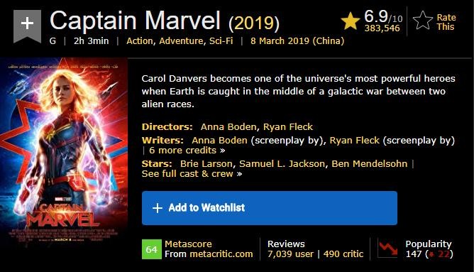 9.《惊奇队长》Captain Marvel