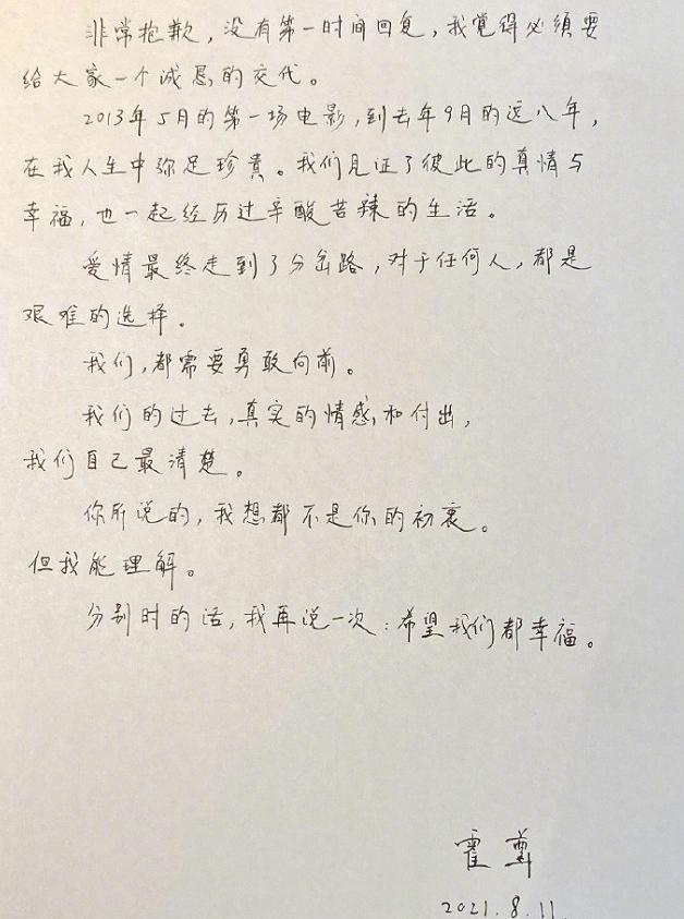 霍尊在8月11日以手写信的方式进行回应,却什么都没说明白,还有这字真的该练下。