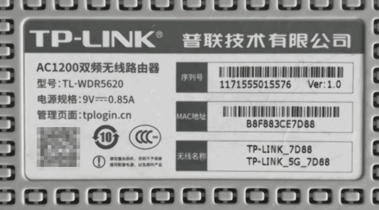 2.在路由器背面(底部)的贴纸上面,查看默认的无线名称(WiFi名称)、管理地址(登录地址)等初始化信息,如下图所示。