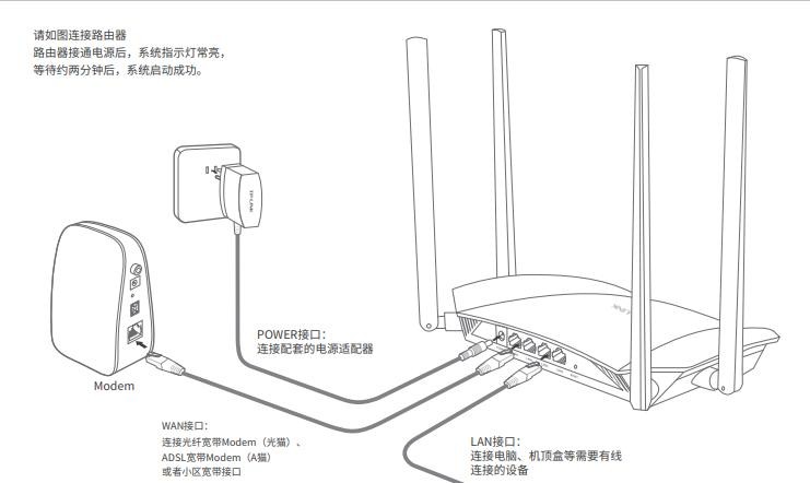 1.先确认下路由器上的网线连接是否正确?因为如果路由器上的网线连接错误,会导致路由器不能上网。路由器上网线接口的正确连接方式如下: