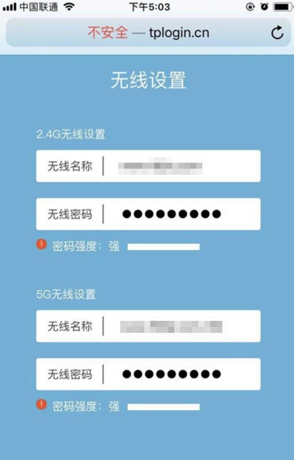 6. 根据页面的提示,重新设置你的 无线名称、无线密码(wifi名称、wifi密码),如下图所示。
