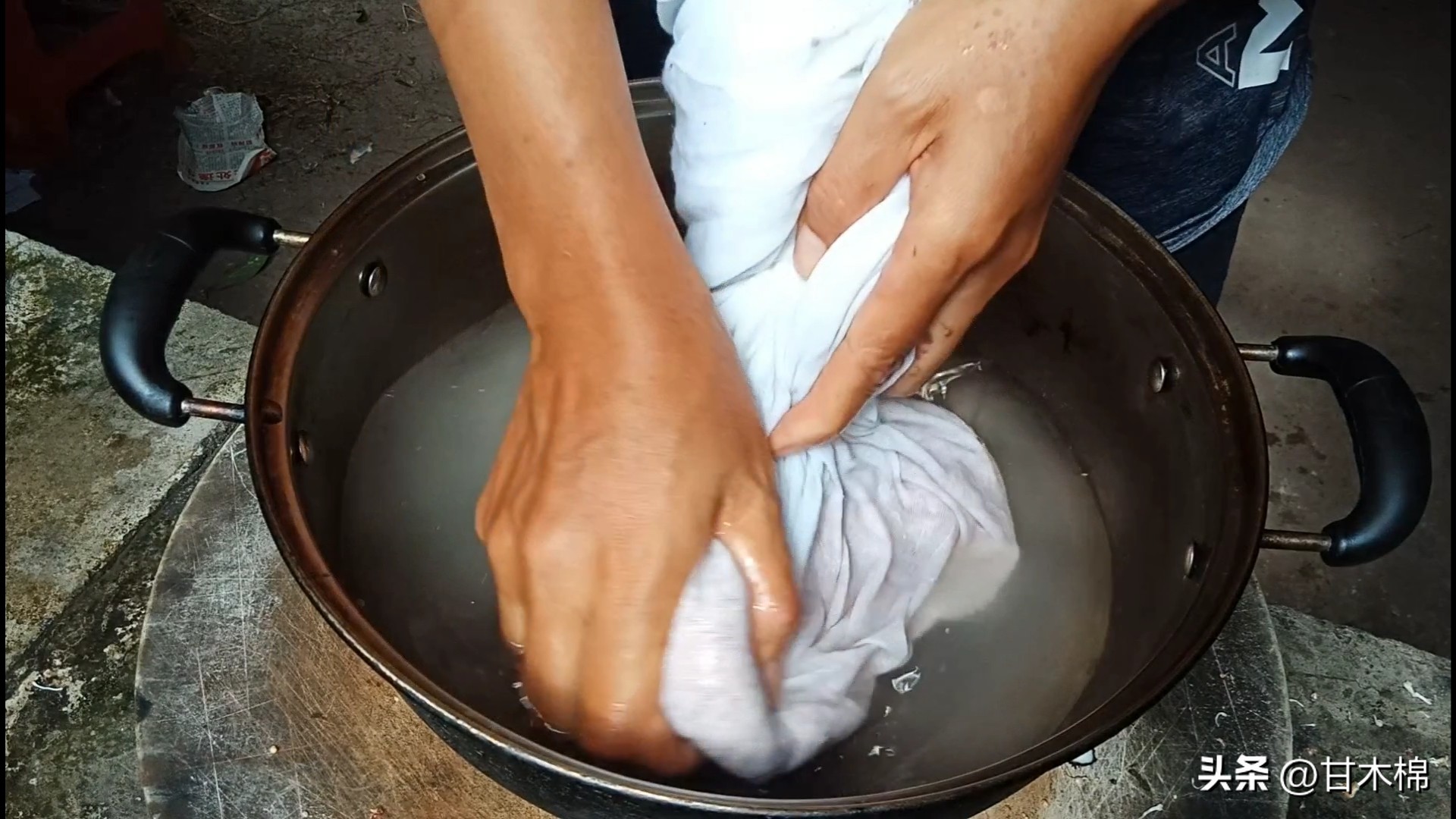 准备一盘凉白开水或矿泉水,将晒干的果瓤装入纱布袋中再放进凉白开里揉搓,直至揉搓出黏稠的汁液。