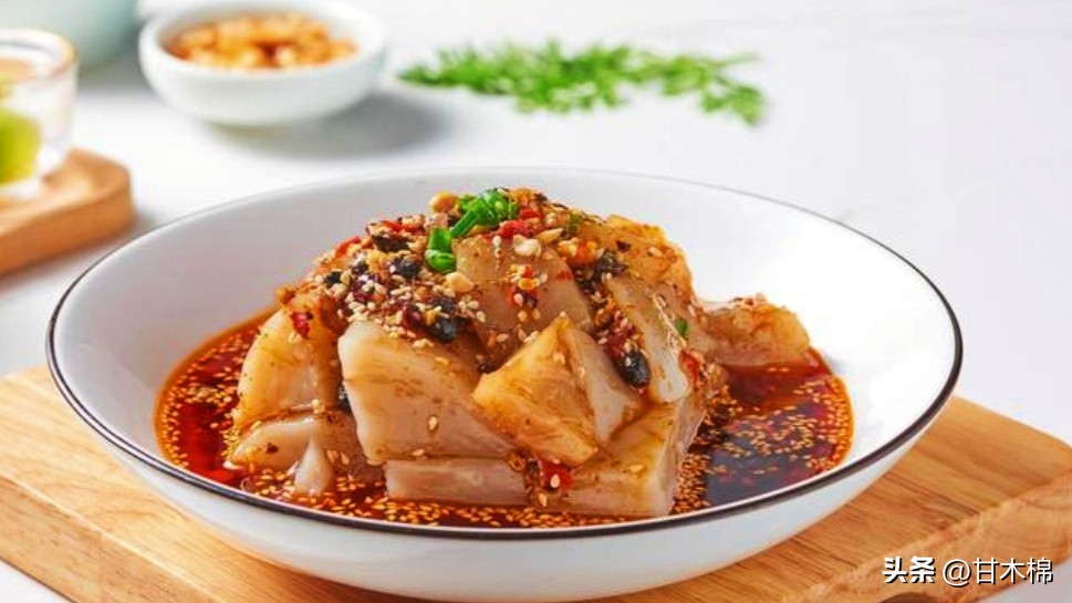 凝固之后就是Q弹美味的白凉粉了,将凉粉切块后加入各种调味料就可以开吃啦,想要甜一些就多加点白糖或蜂蜜,想甜酸可口再加些白醋,喜欢吃辣的还可以加上辣椒哦。