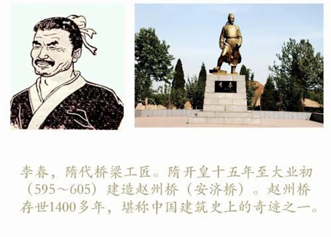 李春在中国以及世界桥梁史上都有极高的地位,是古代著名的桥梁专家。