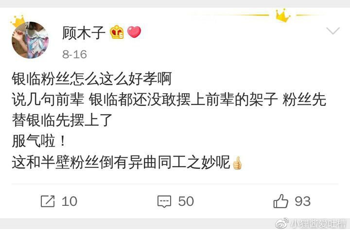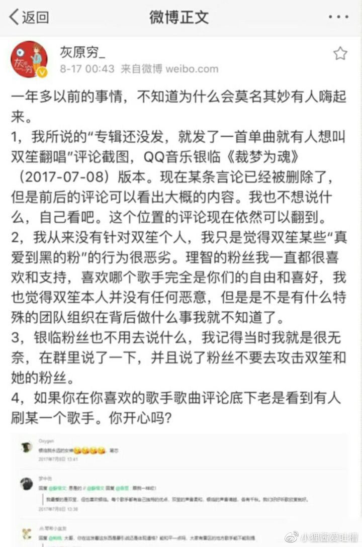 银临觉得很委屈,双笙也感觉委屈。偏偏粉丝又不依不饶、性情中人,压根就不听劝,两人关系活活闹扳。
