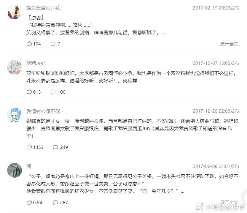 银临的粉丝是这样评论此曲的。