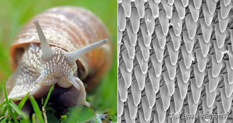 蜗牛的嘴巴里有一个非常特殊的器官,叫做“舌头”。这根舌头其实不是普通的舌头,而是一个像磨石一样的结构,上面密密麻麻地排列着小小的牙齿。科学家称这个结构为“舌齿”。这些舌齿的形状有点像锯齿,极其锋利,正好适合用来“刮食”那些美味的植物。