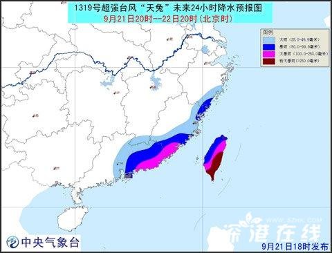 2013 年底 19 号超强台风天兔于 9 月 17 日在菲律宾以东的西北太平洋洋面上生成。其发展过程迅猛,9 月 19 日急剧增强,香港天文台在 18 时 45 分将其升级为超强台风。
