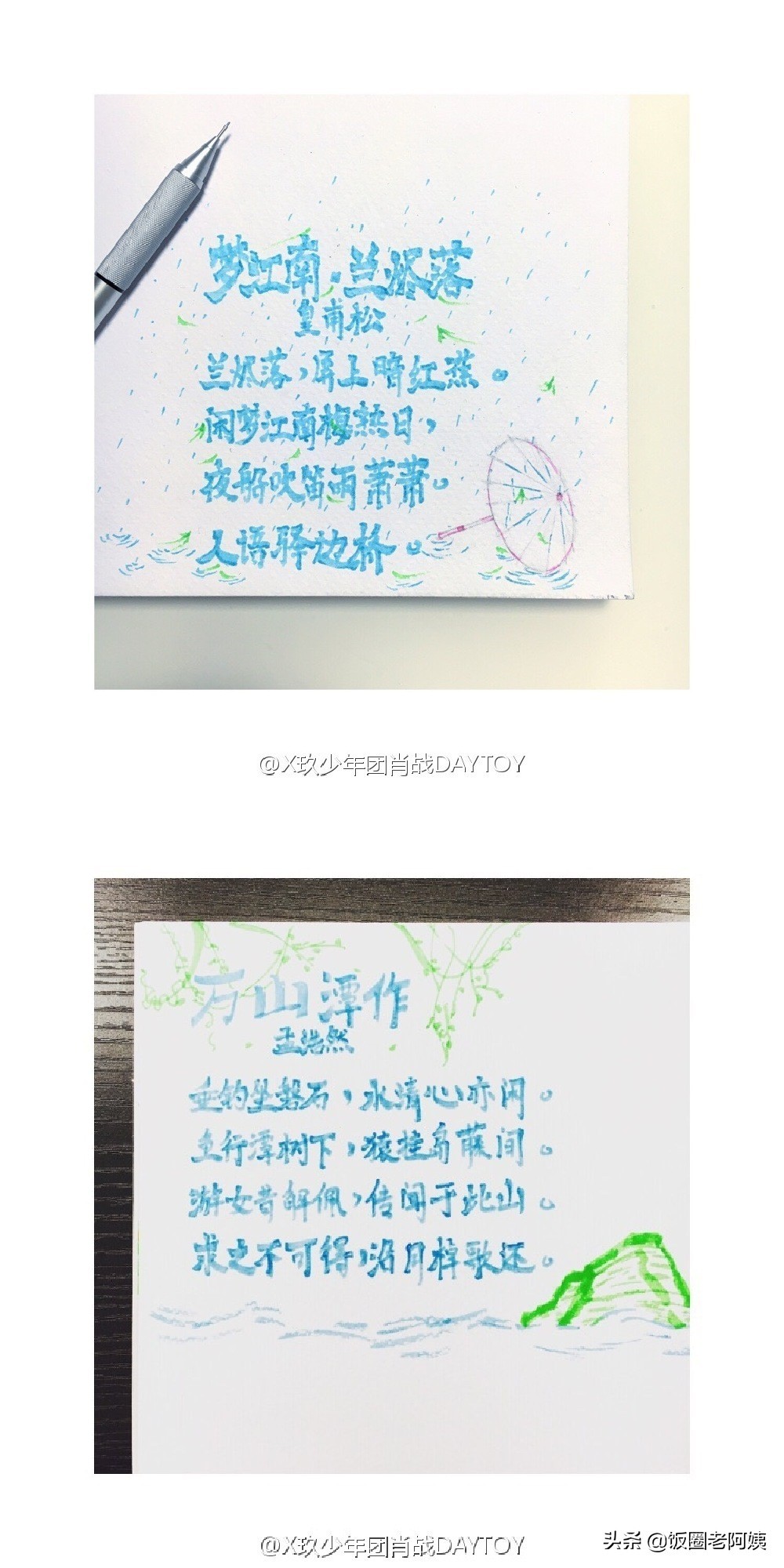 这是战战自己誊抄的诗歌,加上一些意境的景物。