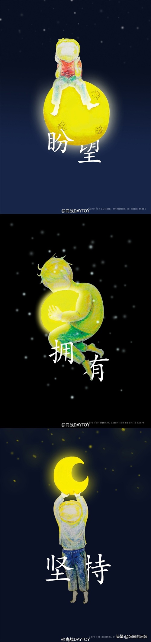 战战每一张图都是饱含在自己的小心思在里面的,可爱的卡通背后蕴含自己的心境。浩瀚的宇宙,只有一个宇航员,渺小孤单,但却无惧,勇敢一直向前飞。