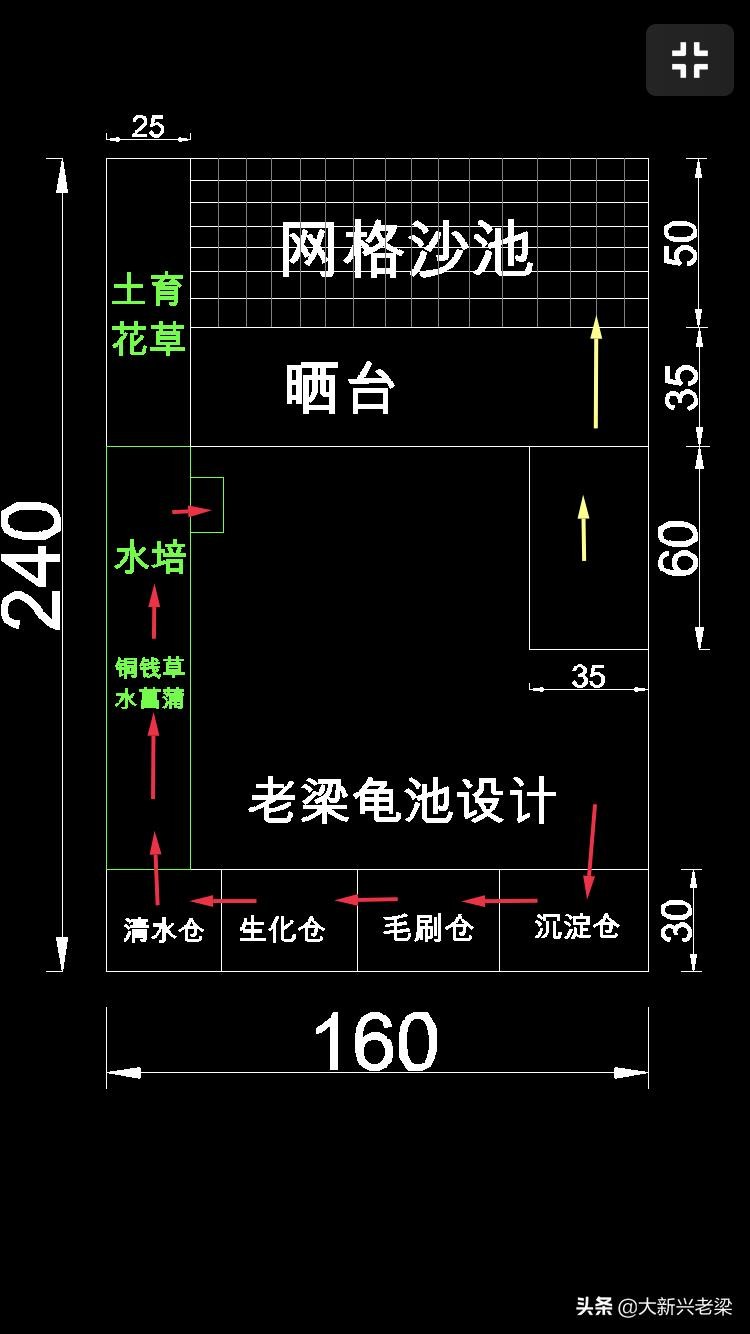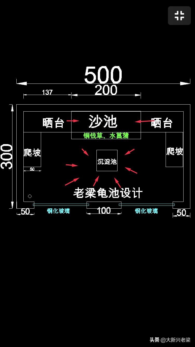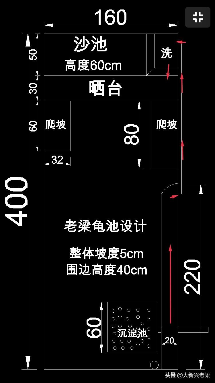 大家好,我是大新兴老梁!最近按龟友提供的尺寸画了一些瓷砖龟池设计图,所以在这里分享给大家参考!