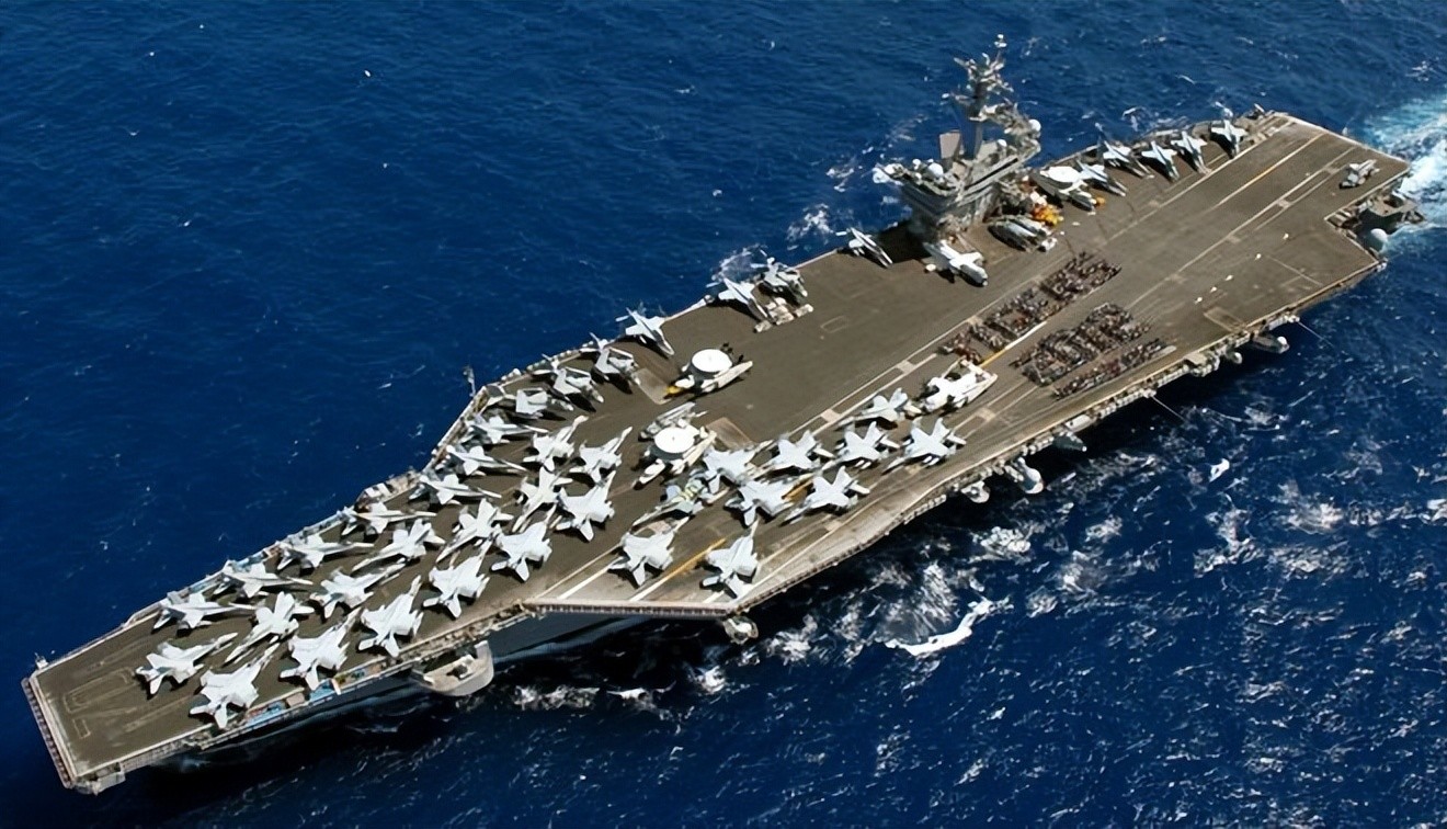 作为以美国第40任总统罗纳德·里根命名的旗舰,里根号自1998年奠基,2003年正式服役,已然是航母界的“老将”。333米的舰身、78.34米宽的飞行甲板、近10万吨排水量,这艘“移动的城市”能以超30节的速度驰骋大洋,续航力破百万海里,核动力加持下,二十年无需加油。舰载机群更是豪华配置,从“大黄蜂”到“超级大黄蜂”,再到“鹰眼”预警机,构筑起坚不可摧的空中防线。