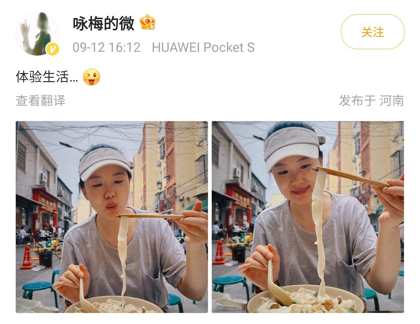 去年,咏梅在个人社交平台上发布了一条生活动态,