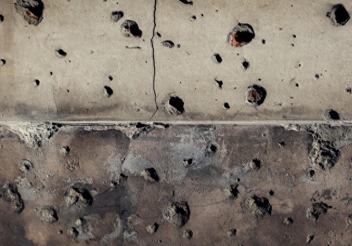 只见屋内大小杂物凌乱地散落在地上,桌上的文件也有明显被翻动的痕迹,而墙上更是布满了大大小小的弹孔。