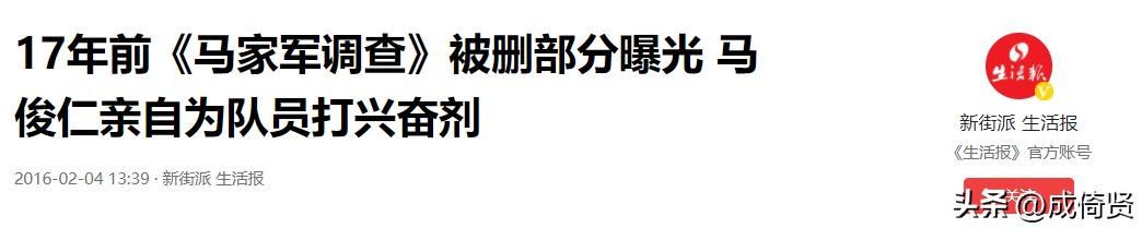 1.新街派 生活报:2016年2月4日,“17年前《马家军调查》被删部分曝光 马俊仁亲自为队员打兴奋剂”