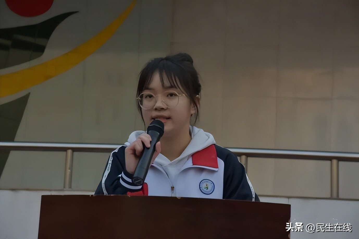 “讲好育才故事,奋力争冠嬴高考”。高三年级学生代表三(9)班 项琼说: 民族英雄岳飞在《满江红》这首词里疾呼:“莫等闲,白了少年头,空悲切!”高三的同学们,嬴在高中最后的时间里,为学弟学妹们做好表率,保证良好的学习状态,尽自己最大的努力为我们的梦想奋斗,不惜苦,不怕景,相信坚持到最后的,一定是胜利者。我们也会把最美的微笑留在育才校园中,会把最优秀的一面展示给母校,让毎一位你我都成为最好的自己!