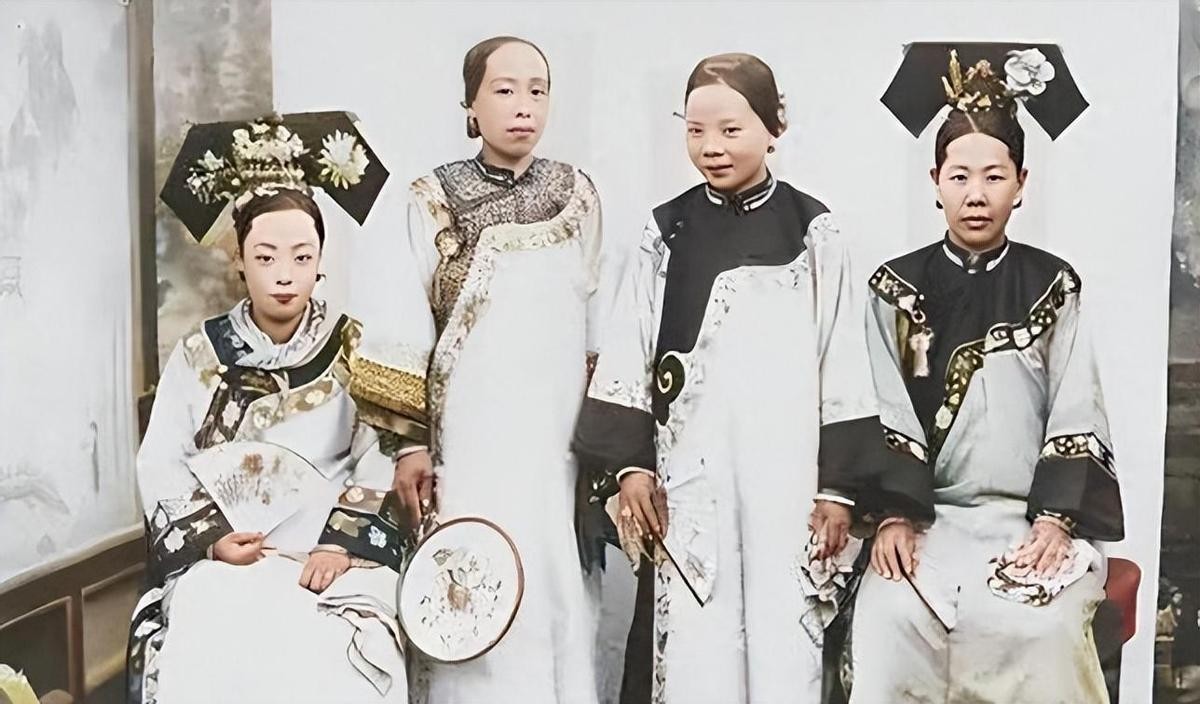(20)晚清一大户人家中正房与小妾,正房的颜值真是没得说,现在看依然很漂亮,2个小妾就差得多了。