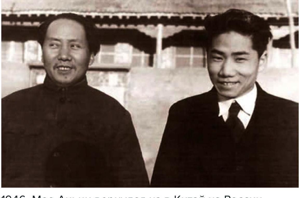 (17)1946年,毛泽东与刚从苏联回国的长子毛岸英合影。