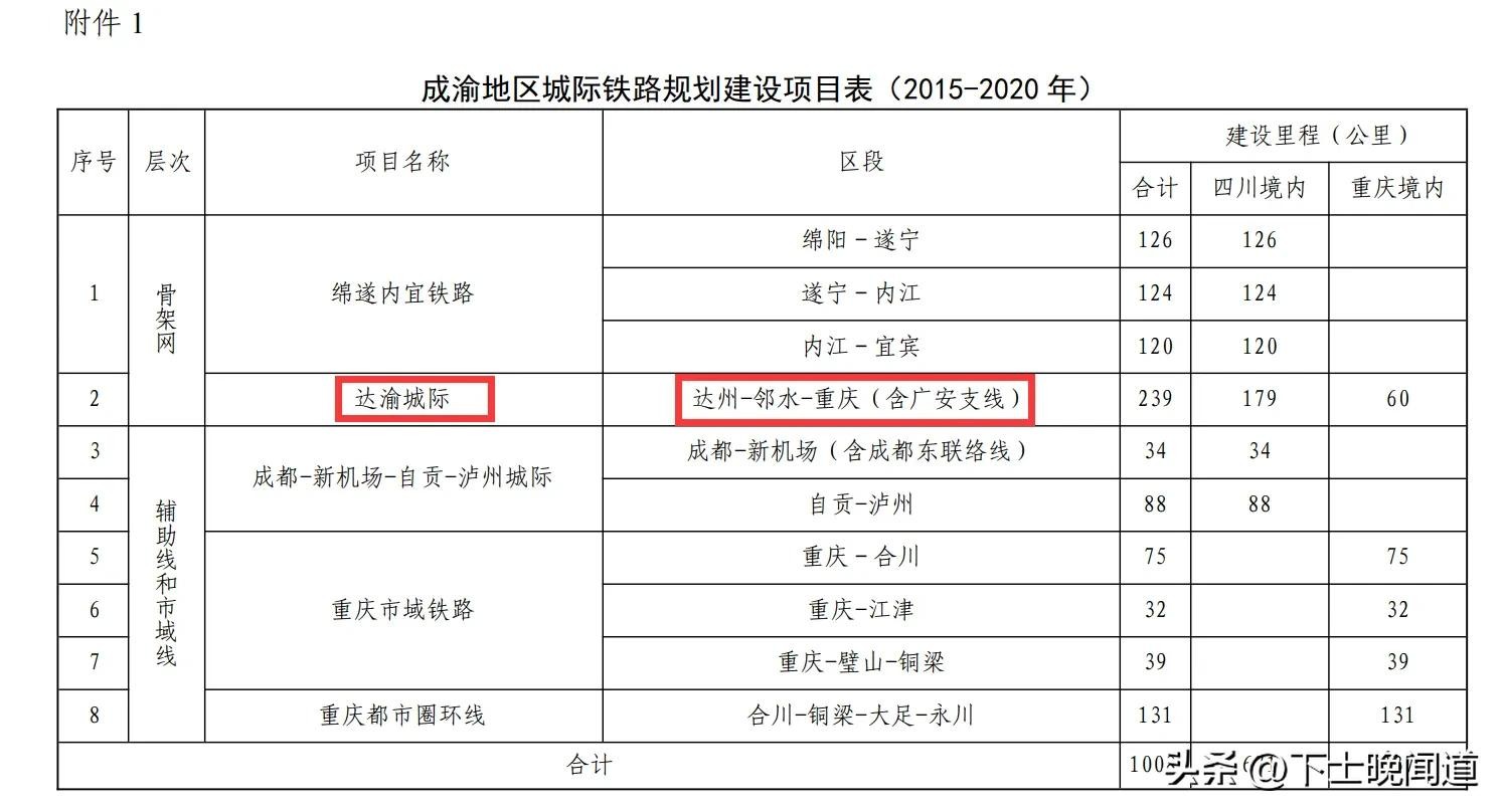 可以看到,项目表和规划图都说的是:达州-邻水-重庆(含广安支线)。其他的没看到进一步消息,可以参考一下当时的相关报道: