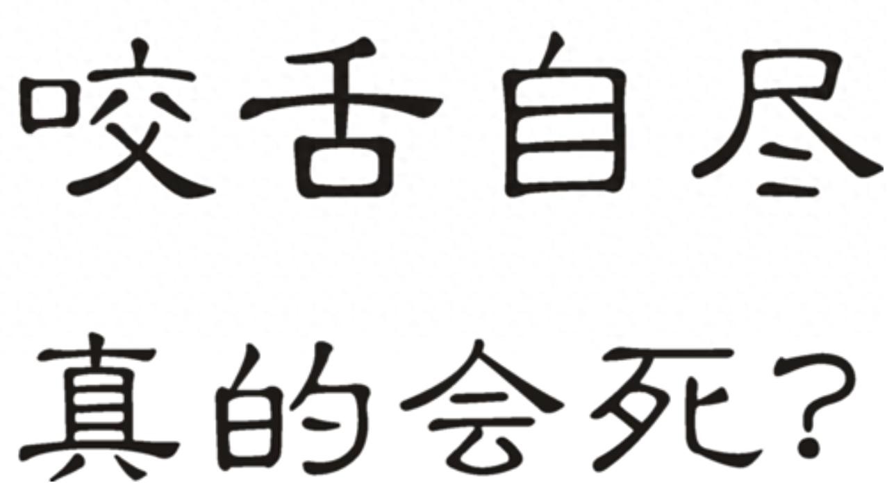 难度和痛苦:咬舌自尽非常痛苦,极难完成。人在极度疼痛时会本能地停止造成这种伤害的行为。不可靠性:即使咬断舌头,也不一定会导致立即死亡。大量的出血和窒息可能导致死亡,但这并不是一个可靠的自杀方法。