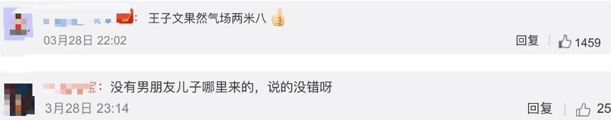 网友们纷纷留言力挺王子文,大赞其气场两米八,而且她以前肯定是有男朋友的,不然也不会有个儿子。