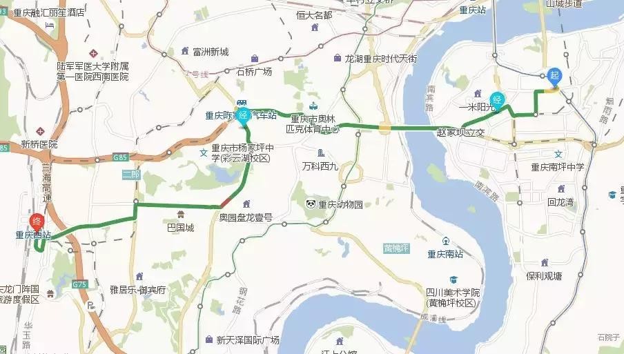 重庆西站-新区大道-火炬大道-翼龙路-龙腾大道-大公馆立交-菜袁路-菜园坝立交-南区路-重庆长江大桥-江南大道-南坪北路