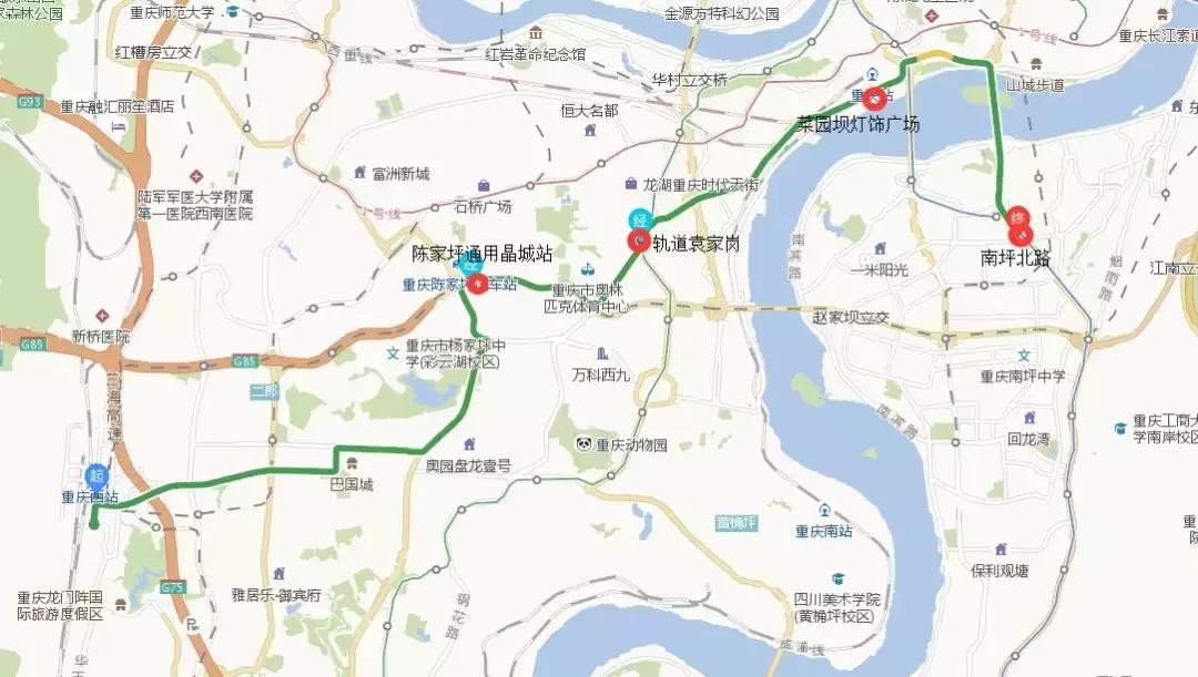 重庆西站、陈家坪通用晶城、轨道袁家岗、菜园坝灯饰广场、南坪北路