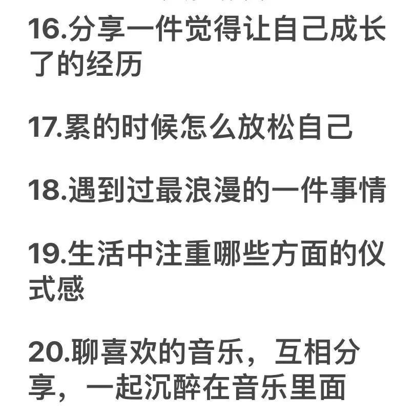 我给大家整理了最最容易跟女生聊出感情的20个话题,想早日俘获女神心,这20个话题一定要多聊,记得点赞收藏截图保存,不刷错过了就刷不到了哦~