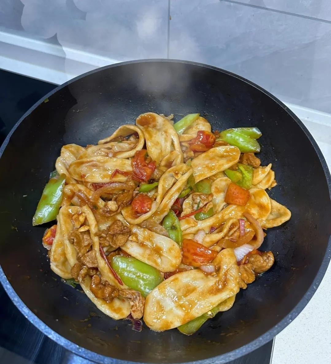 这么一盘用面粉搭配食材做成的美食,直接吃饱肚子不用吃米饭了。