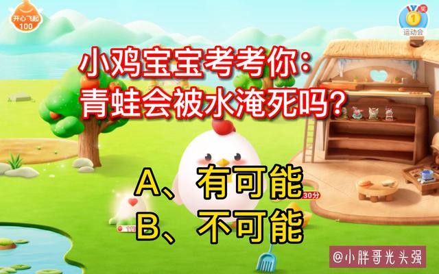 小鸡宝宝考考你:青蛙会被水淹死吗?不可能答案:有可能。