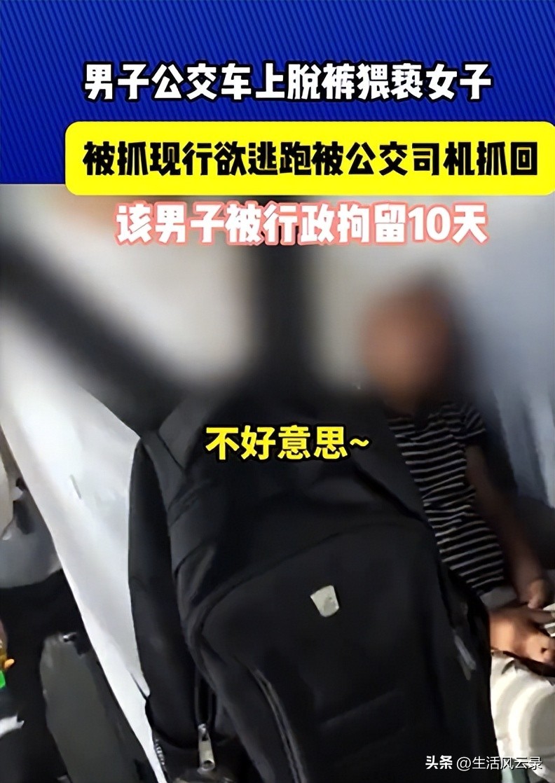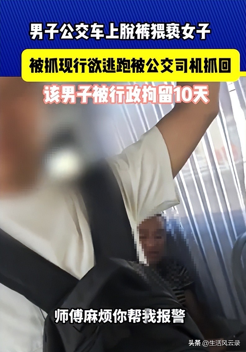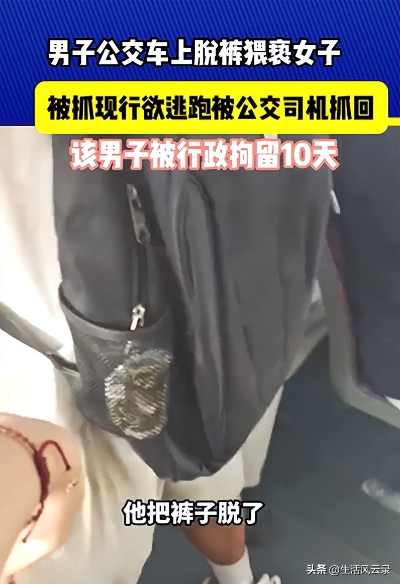 公交车惊现变态,男子脱裤暴露隐私部位,紧贴女子身体。