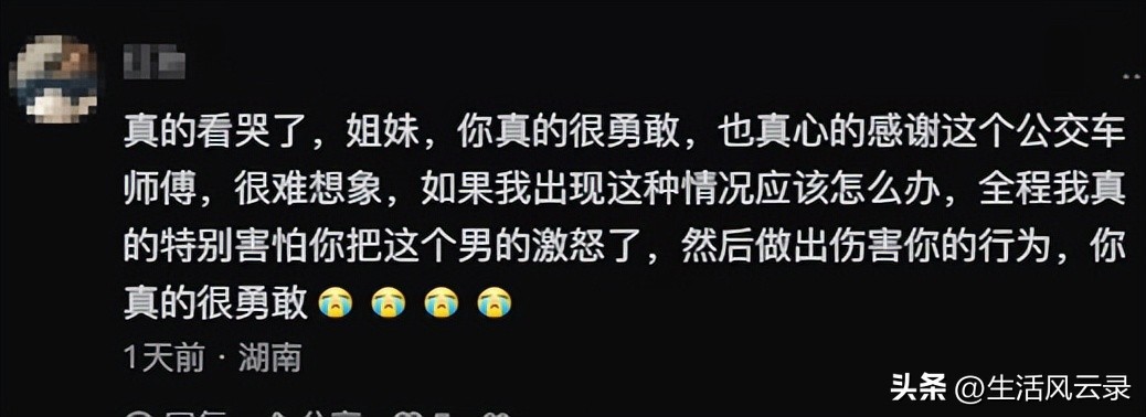 真的看哭了,姐妹,你真的很勇敢,也真心的感谢这个公交车师傅,很难想象,如果我出现这种情况应该怎么办,全程我真的特别害怕你把这个男的激怒了,然后做出伤害你的行为,