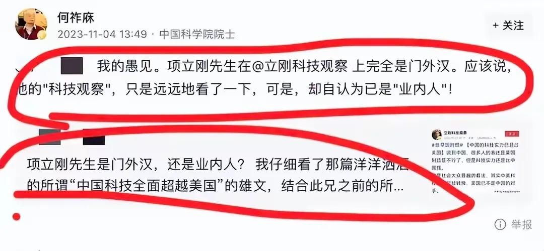 何院士也不甘示弱,他怒怼项总是一个彻头彻尾的门外汉。