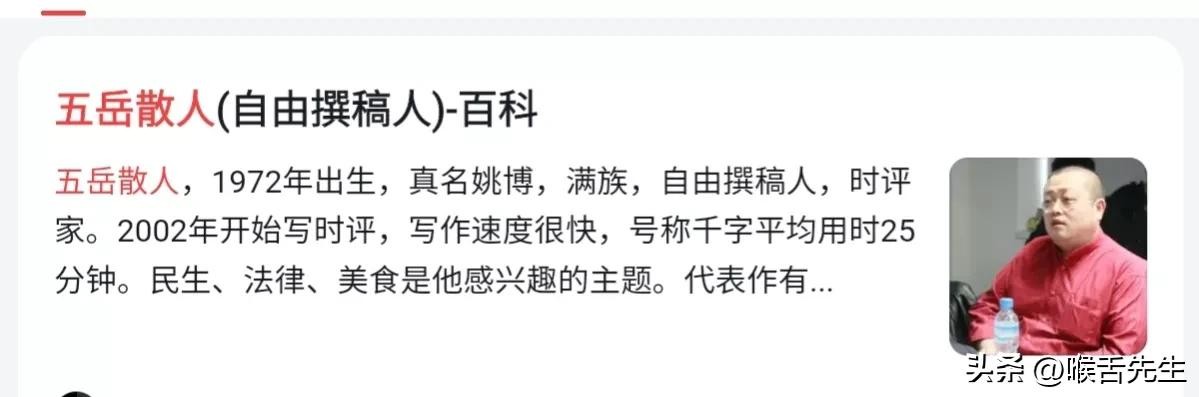 当然,别以为胡锡进跟五岳散人是什么好朋友,至少现在肯定不是,因为五岳散人之前就在发表迷惑言论时讽刺过胡锡进。