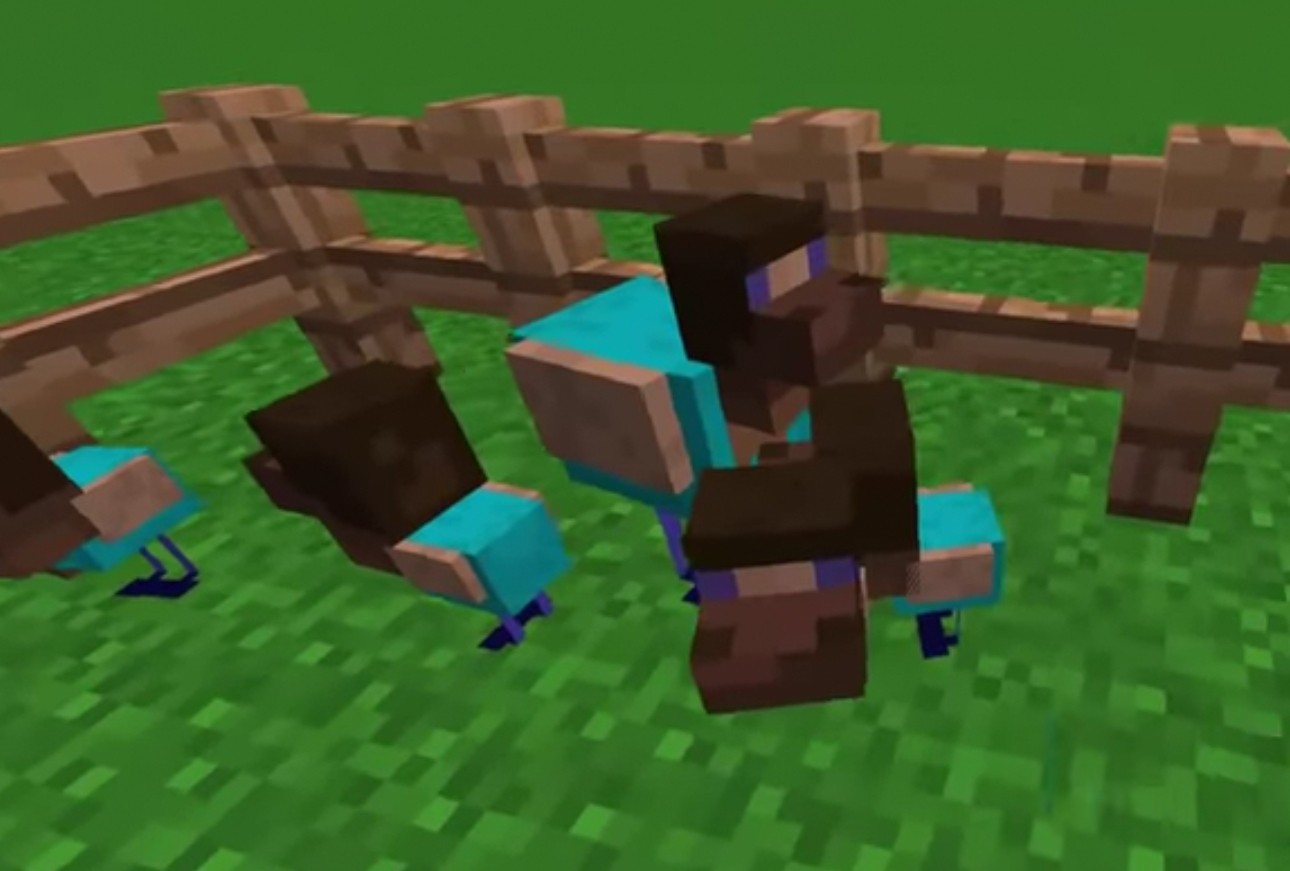 除了鸡形的史蒂夫,玩家们还进行了这样一个设计。目标同样是史蒂夫,不过对史蒂夫有一些"鬼畜"操作,史蒂夫的头直接被安装到了身体的前方。看着史蒂夫的样子,不仅发生了猪笑。以上两个史蒂夫的形状,都是在模组当中设计的。但是接下来的"鬼畜"图并不是模组,而且自行通过P图出来的,第一个"受害者"就是村民!(注:图片只是P图效果,并没有歧视任何一个MC生物)