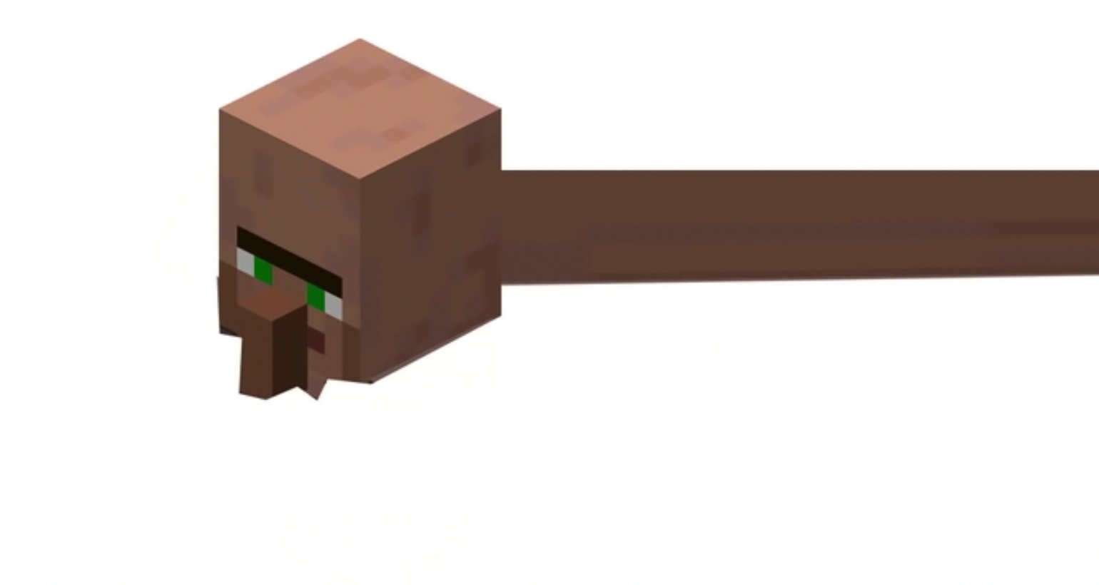 这是新的道具吗?村民被P成了类似于帽子的形状,据说带上这顶帽子可以召唤铁傀儡哦。加长版村民