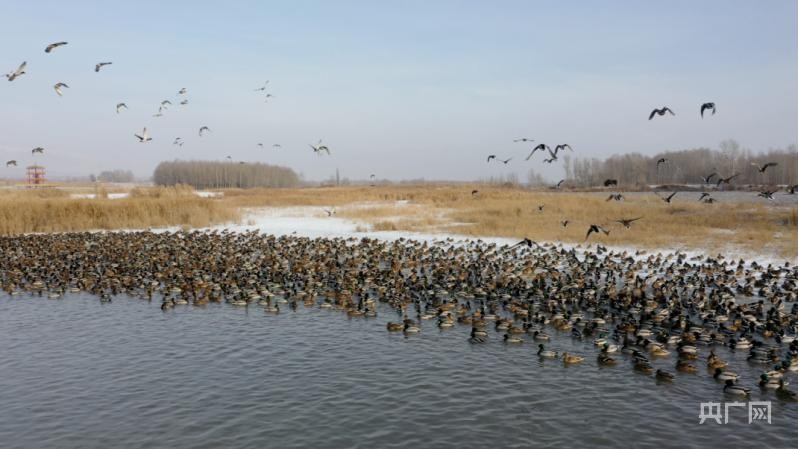 成千上万只野鸭悠然地在水面上嬉戏(央广网发 李文杰 摄)