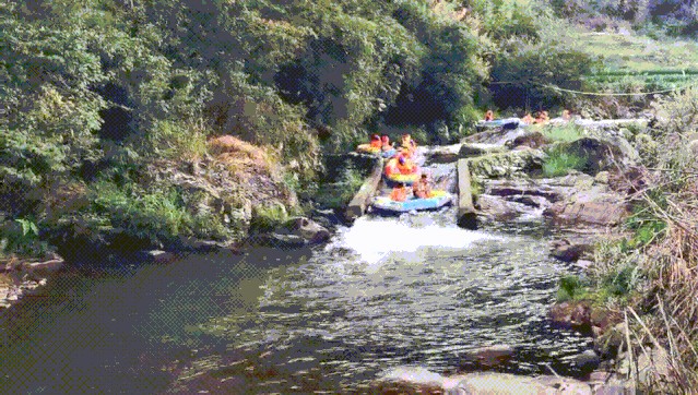 据了解,溪口漂流河段全长3.6公里,总落差168米(全程有48个滑道)最长滑道85米,最高落差12米,漂流时长达2个多小时。