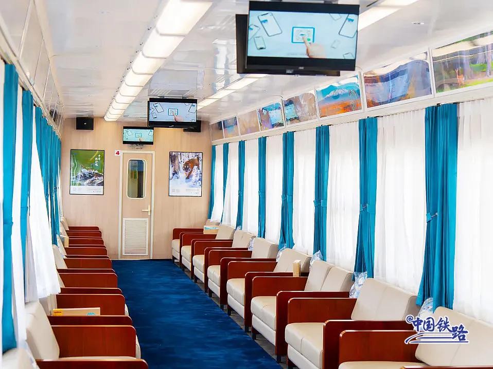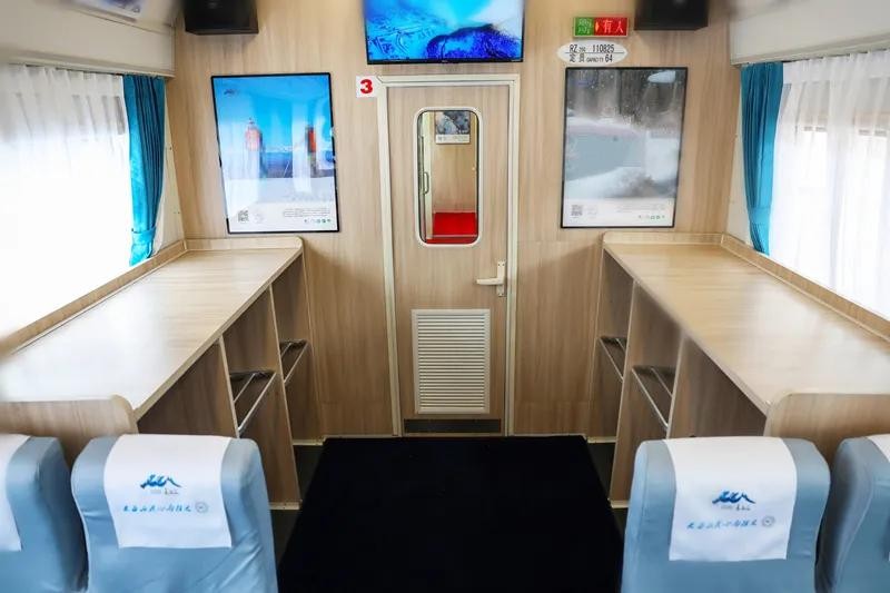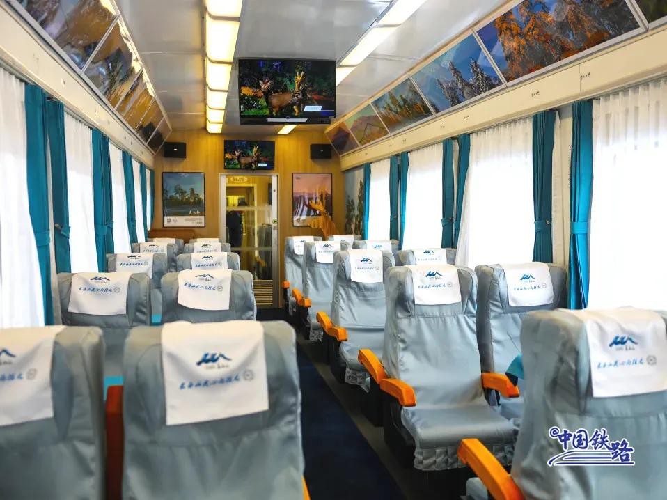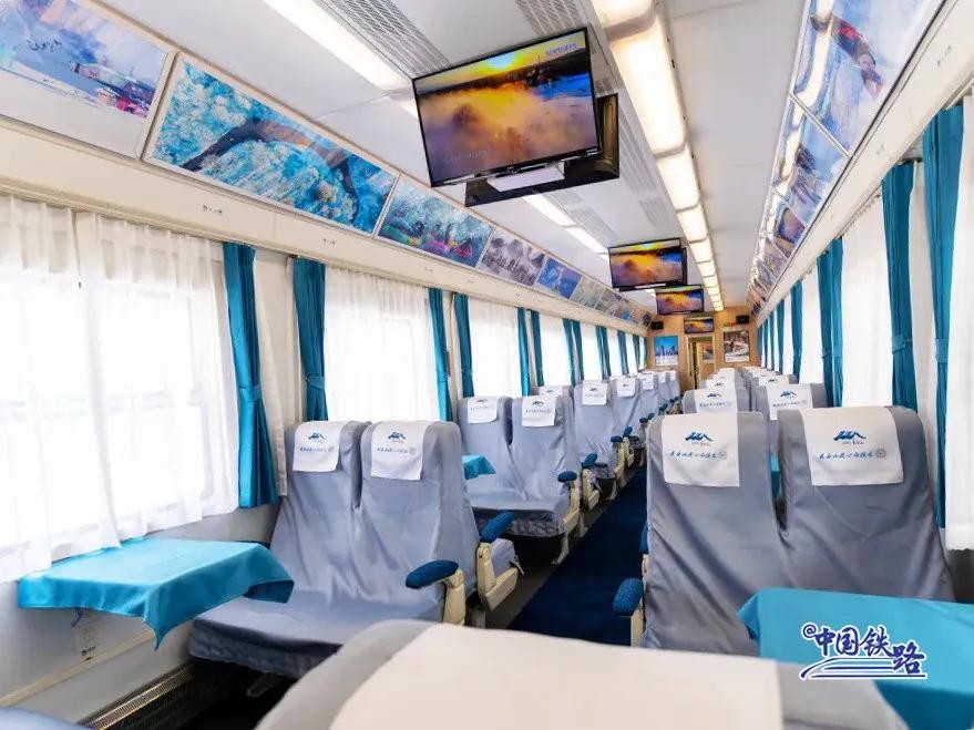 列车共有192个席位,设有会议、餐车、软座、硬座等6节车厢,提供餐饮、商务、演艺、旅拍等多场景、全方位的“管家式”服务,在满足旅客基本需求的同时,提供更丰富的旅途体验。