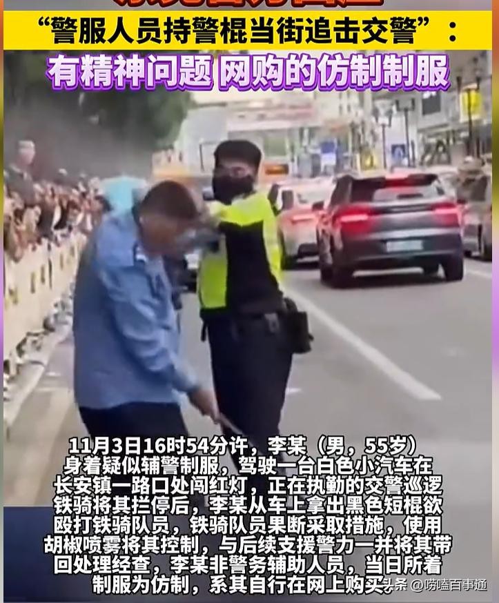 在网络平台上,他购买了仿制的警服与装备,误以为自己能“行使执法权”,结果导致了这场街头“执法”闹剧。