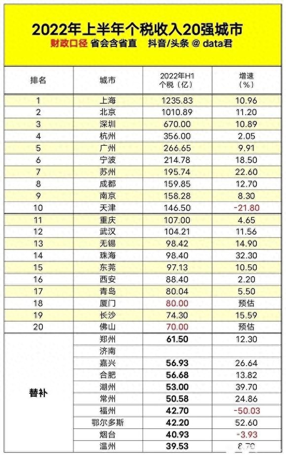 其中厦门和长沙,在前两年,个税曾经有过高光表现。但是随着特殊优惠政策的退潮,这两个城市的个税数据也慢慢回归正常。