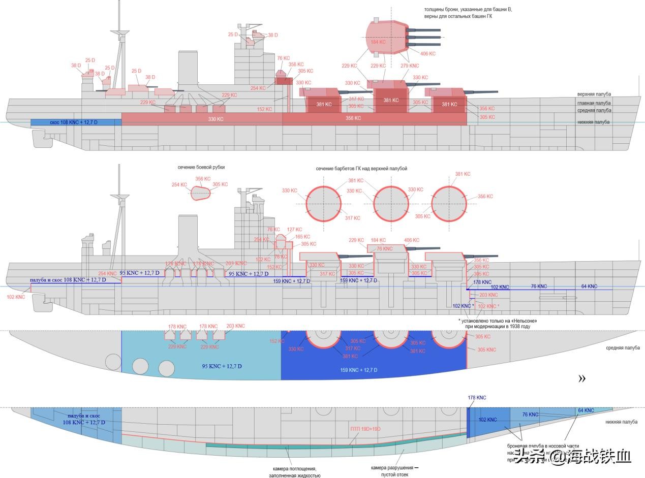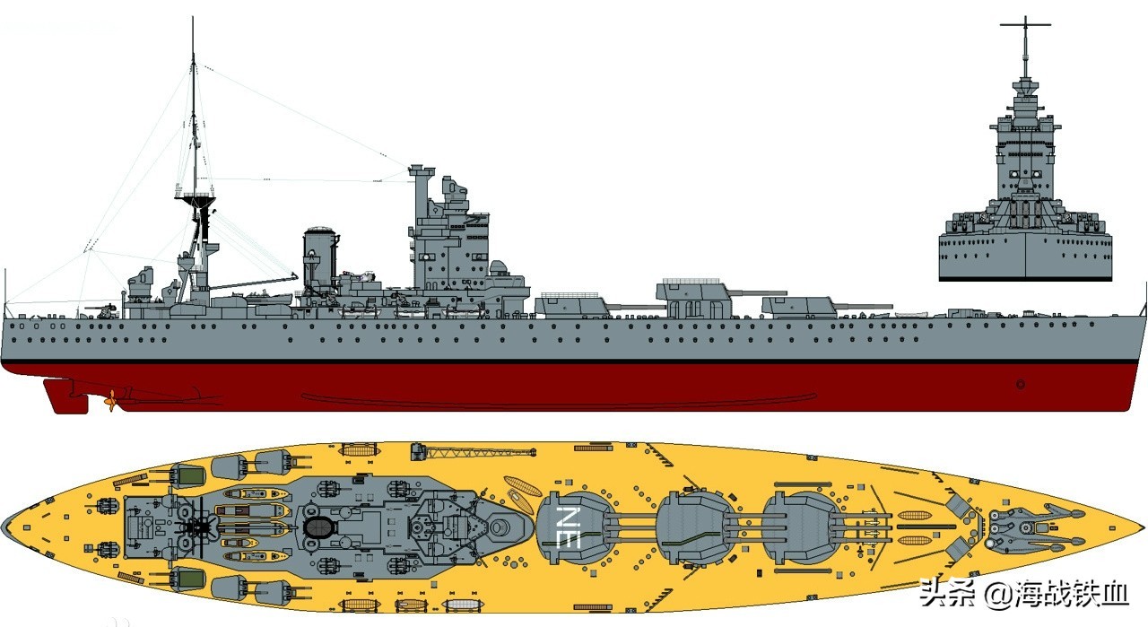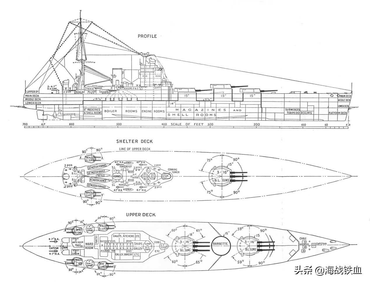 同时由于吨位限制,英国率先采用了三座主炮塔全部前置采用品字布局的方式缩短主装甲带长度来加强防护。辨识度异常高的主炮布局只能说是条约限制下英国海军无奈的选择,带来的负面影响也是很大的,主炮的射界存在盲区,战舰后方是主炮的射击死角,但是考虑到英国皇家海军的综合实力和一贯的无畏精神,只会向前冲锋追击敌人,根本用不到主炮向后射击吧……