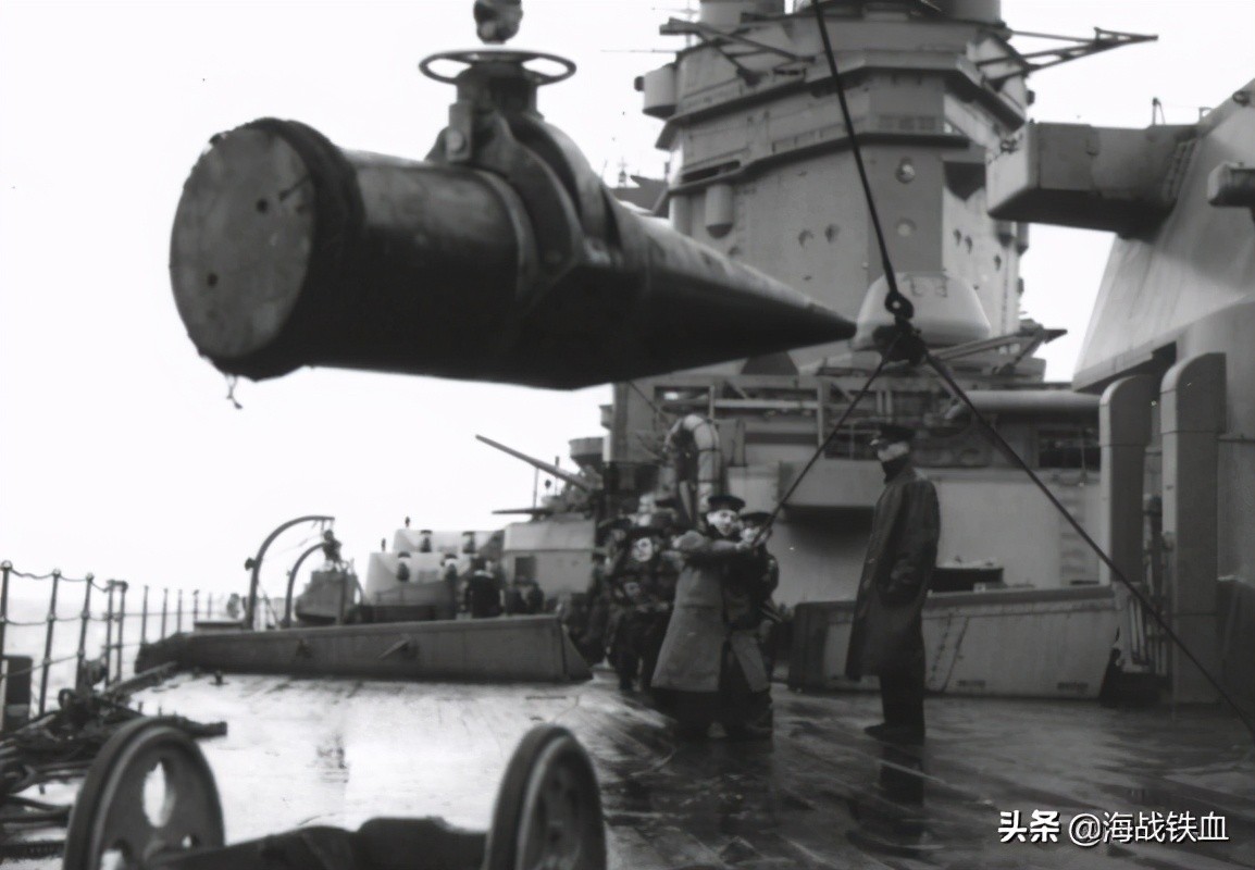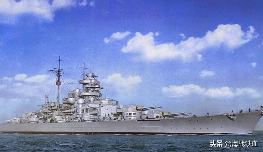 俾斯麦号战列舰遭到皇家海军的报复性射击,上层建筑全毁,被迫自沉