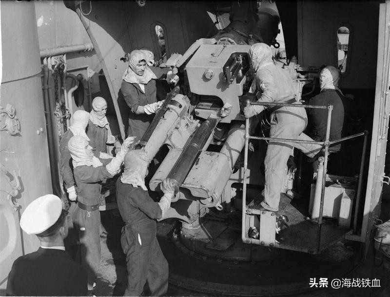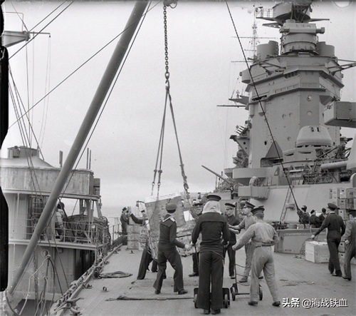 正在搬运UP火箭弹药的“英王乔治五世”号战列舰上的士兵