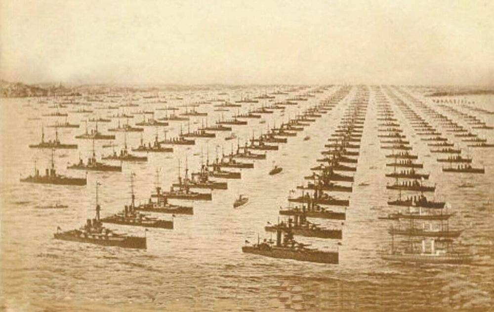 英国皇家海军1914年阅兵阵容:包括60艘战列舰,日德兰海战出动了约一半的阵容