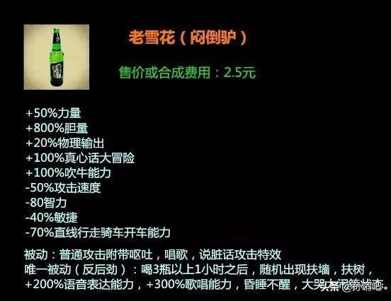老雪这种啤酒算得上蔫坏型,虽然麦芽纯度高,还有糖浆,喝起来口味醇鲜,但千万别不把它当回事儿,因为它后!反!劲儿!“嗡”一下子就上头,“闷!倒!驴!”的外号可不是白叫的!
