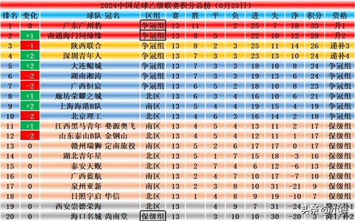 中乙积分榜:南北榜首两连败疯狂刹车,北区榜首易主,升级区生变