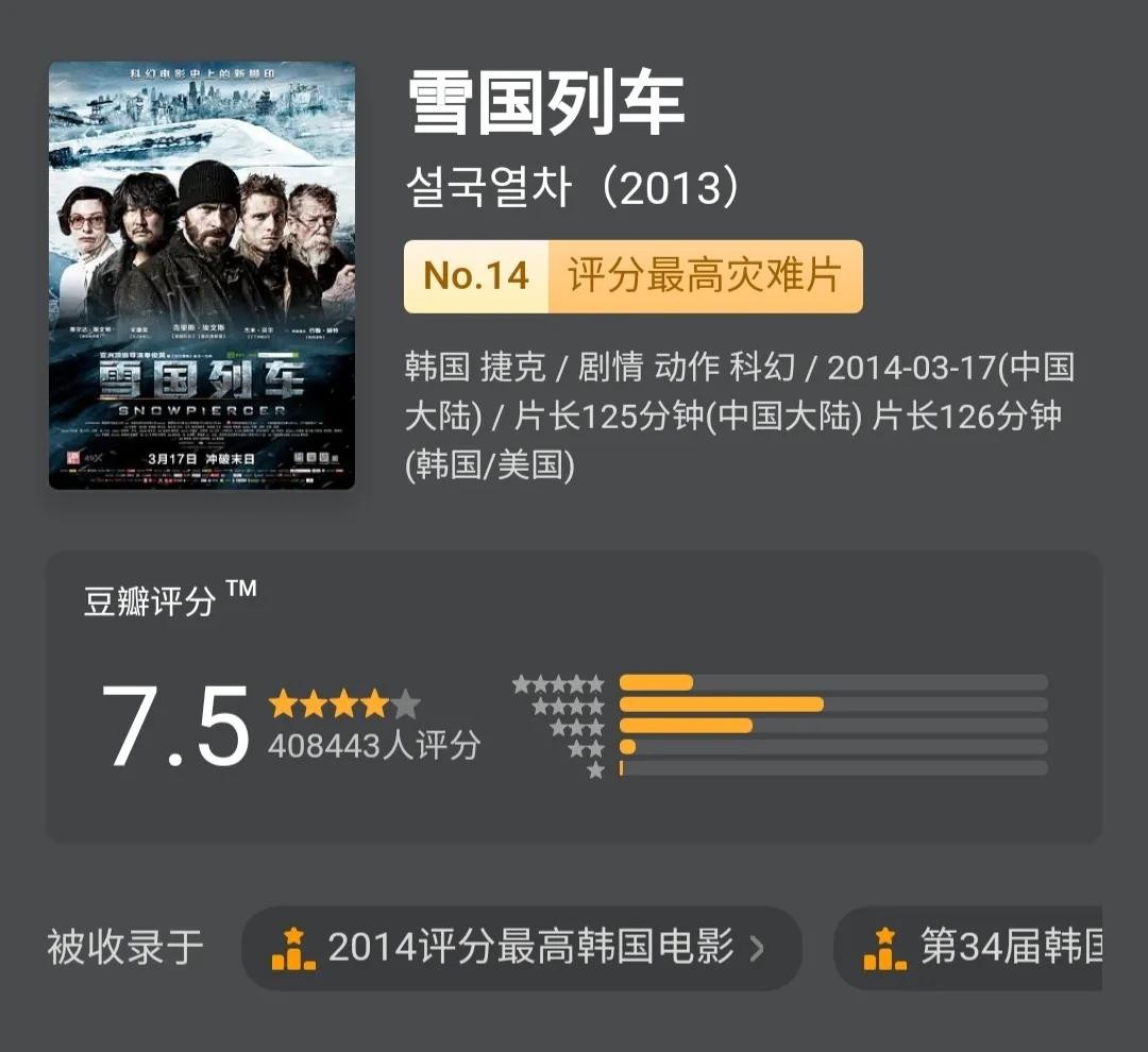 韩国为数不多的灾难片,本人比较喜欢韩国电影,只能说真实的可怕,比如《熔炉》《素媛》等口碑好电影。