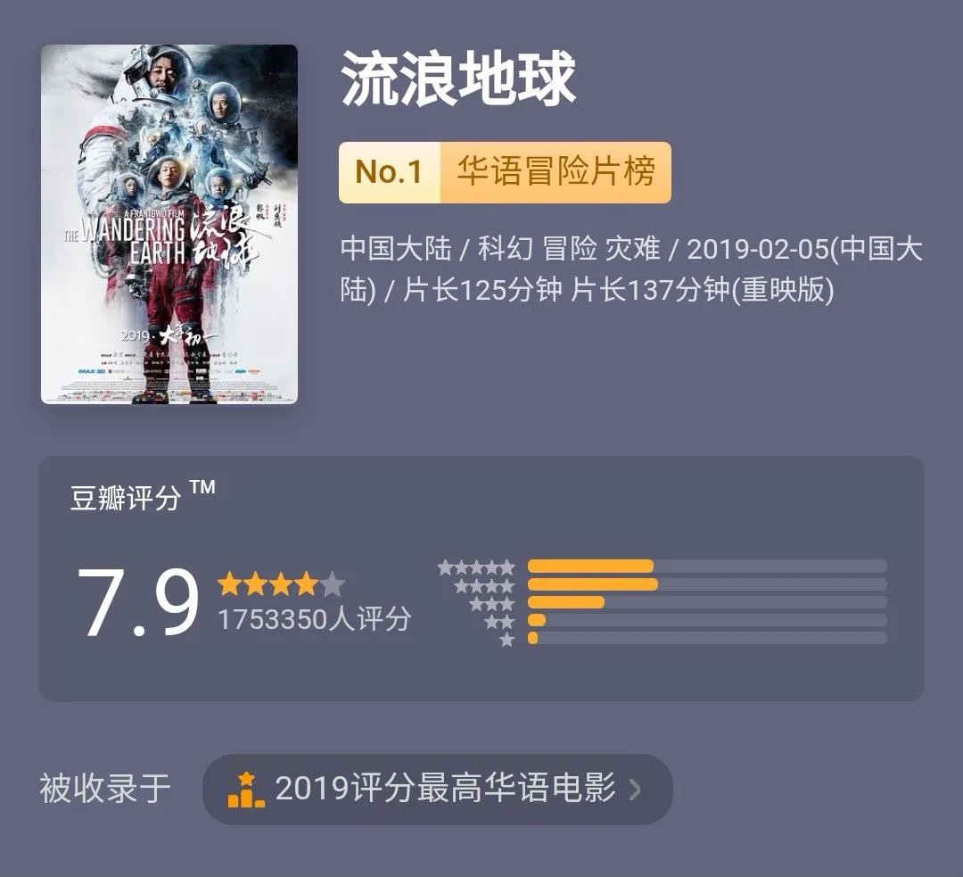影片简介:讲述了太阳即将毁灭,已经不适合人类生存,而面对绝境,人类将开启“流浪地球”计划,试图带着地球一起逃离太阳系,寻找人类新家园的故事