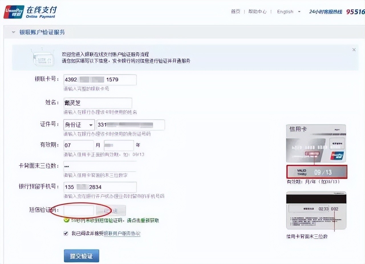信息补充完整以后,发送验证码,收到以后填进去,点击提交验证: